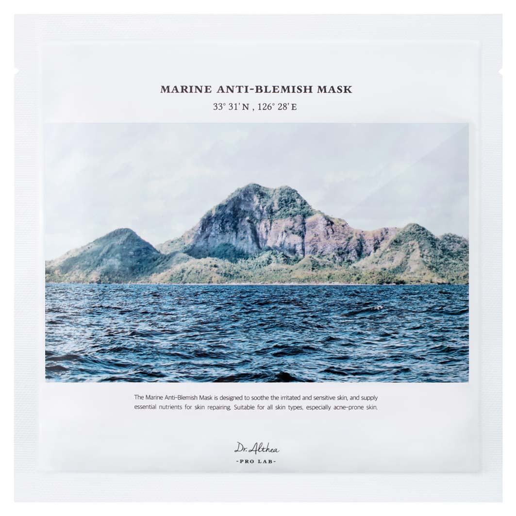 Dr. Althea Marine Anti-Blemish Mask – tai atkuriamoji ir raminamoji lakštinė veido kaukė, praturtinta jūrinės kilmės ekstraktais bei probiotikais. Ji padeda atkurti drėgmės balansą ir išlyginti odos toną